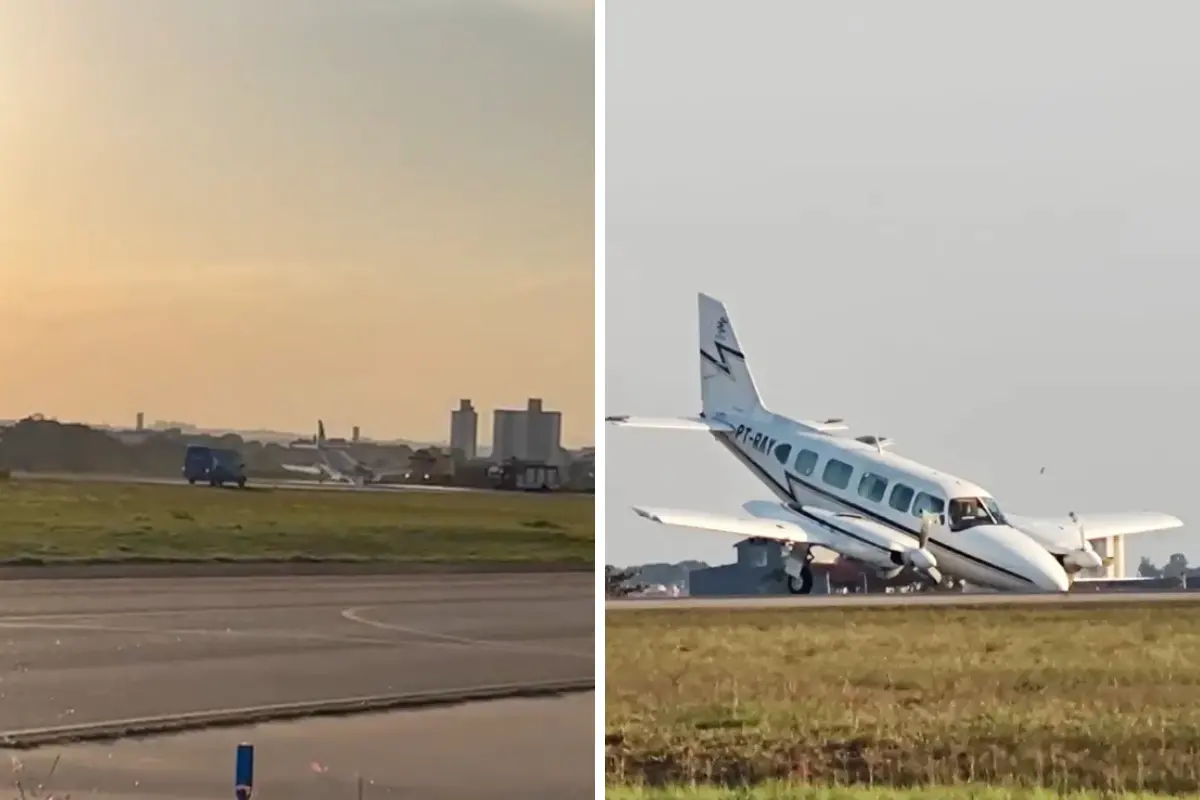 Um avião bimotor apresentou problemas com o trem de pouso, e tocou o bico na pista durante a aterrissagem no aeroporto de Sorocaba, em São Paulo. O caso aconteceu na quarta-feira (12), deixando o Aeroporto Bertram Luiz Leupolz interditado por cerca de duas horas e meia. Ninguém ficou ferido e as operações retornaram às 19h33.