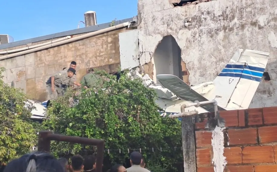 A aeronave atingiu um sobrado onde funciona um supermercado na parte debaixo. Duas mulheres estavam na casa no momento do acidente, mas não ficaram feridas, segundo os bombeiros.