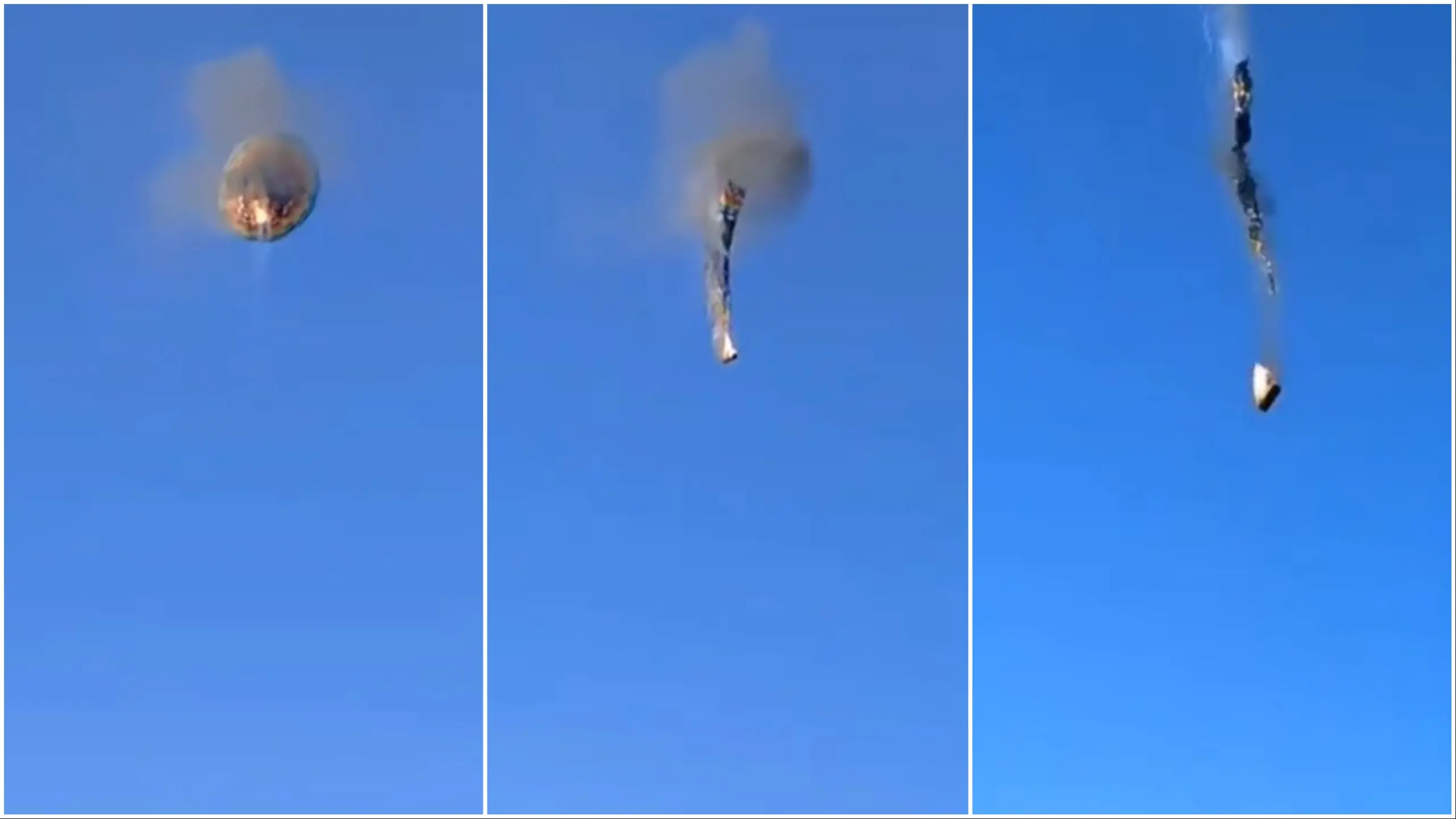 Imagens nas redes sociais mostram o momento em que o balão é afetado pelas chamas e despenca ao solo.