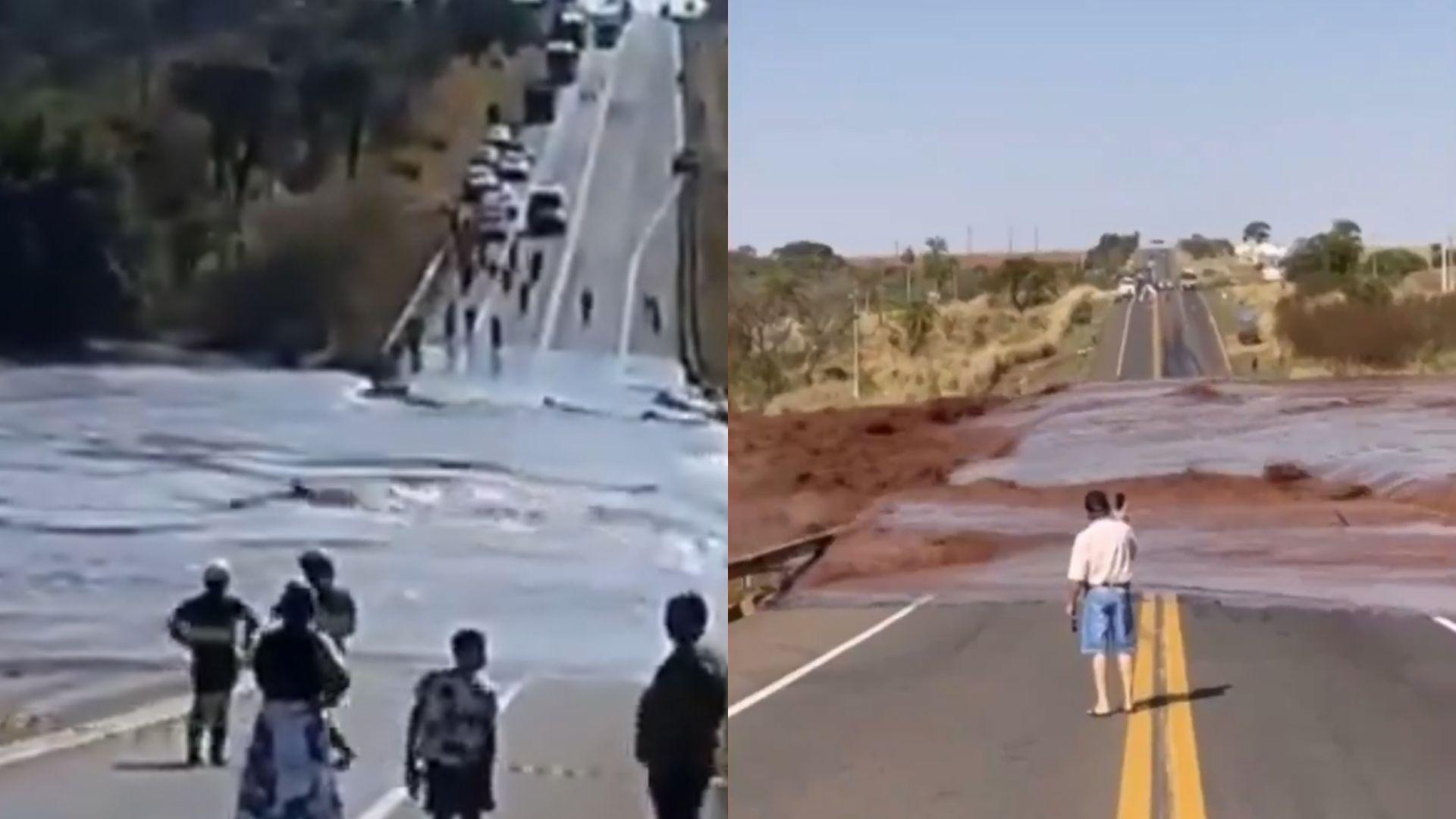 A Polícia Rodoviária Federal (PRF) informou que houve danos ao asfalto e orientou os motoristas a utilizarem os desvios nos Kms 495 e 511 da BR-163.