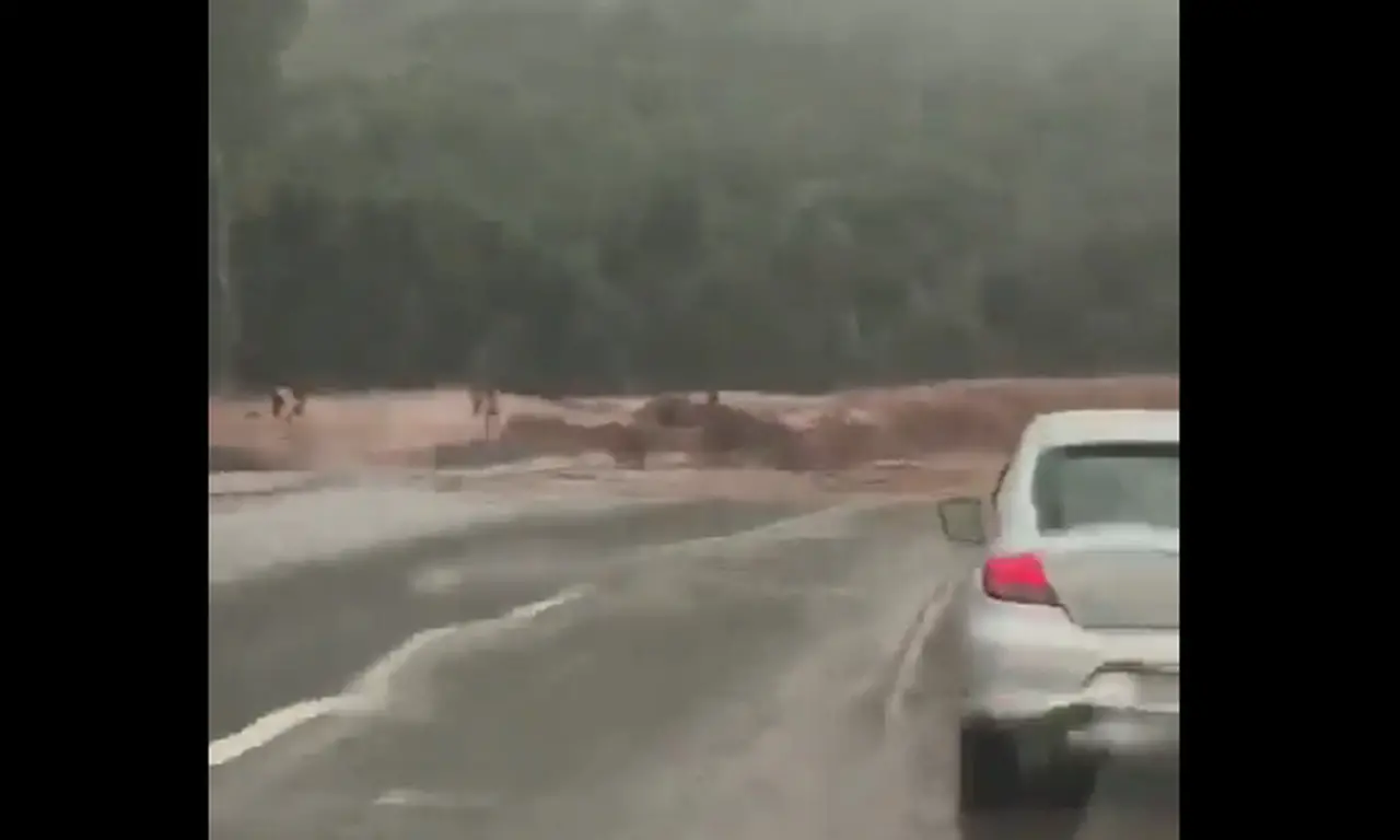 Água transbordada invadiu BR-040 atingindo carros que passavam pelo local; apenas uma pessoa com ferimentos leves foi registrada até o momento