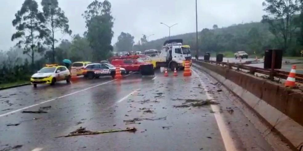 A água transbordada invadiu a BR-040, que liga Belo Horizonte ao Rio de Janeiro. Um carro que passava pela via no momento da invasão da água foi atingido. Apenas o motorista estava no veículo, que não sofreu ferimentos graves.