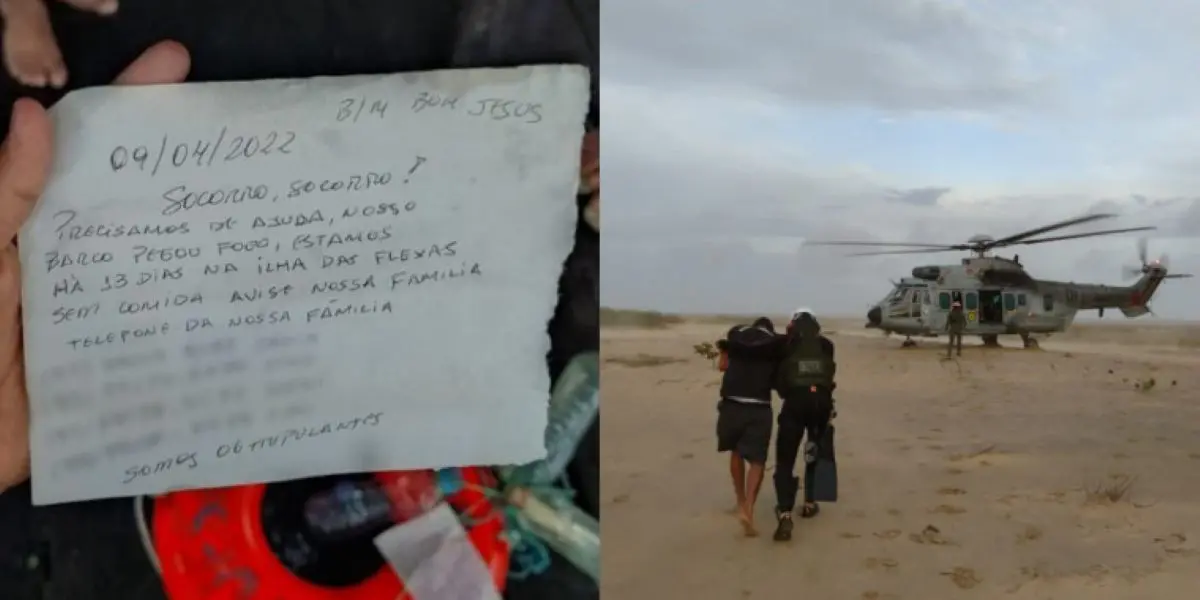 "Socorro, socorro, precisamos de ajuda", dizia um bilhete encontrado dentro de uma garrafa por pescadores no Pará. O desespero registrado em um papel foi uma tentativa de pedir ajuda para sair de uma ilha. Os seis homens ficaram 17 dias presos, após o barco deles naufragar, na Ilha das Flechas, a 150 km de Belém.