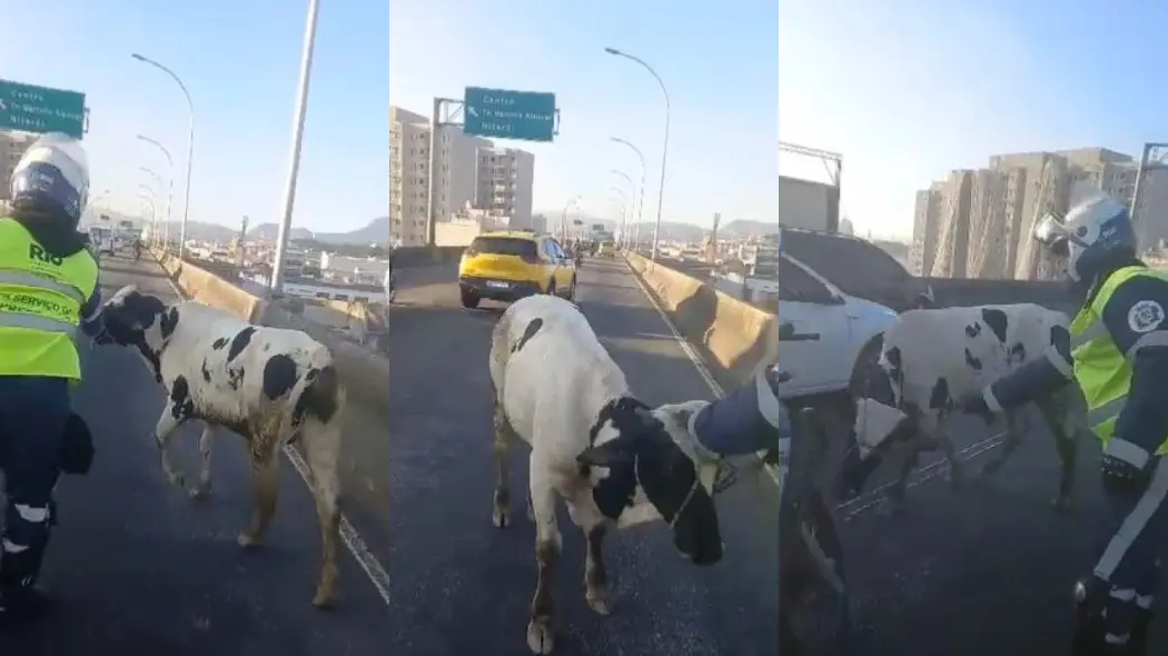 Um bezerro de 4 anos fugiu e causou transtorno no trânsito do Rio de Janeiro, nesta quarta-feira (5). O caso ocorreu entre 8h e 9h na manhã, às margens da Linha Vermelha, na Zona Norte. O boi fugiu de um curral na comunidade no Caju. Agentes municipais resgaram o animal no Viaduto Gasômetro e o encaminharam para o Centro de Zoonoses, em Santa Cruz. As informações são do jornal O Globo.