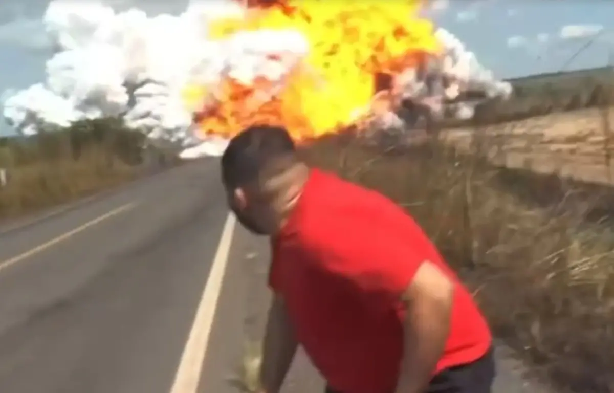 Um vídeo que mostra o momento da explosão tem viralizado nas redes sociais. Nas imagens, é possível ver o repórter Alan Nelis correndo das chamas.