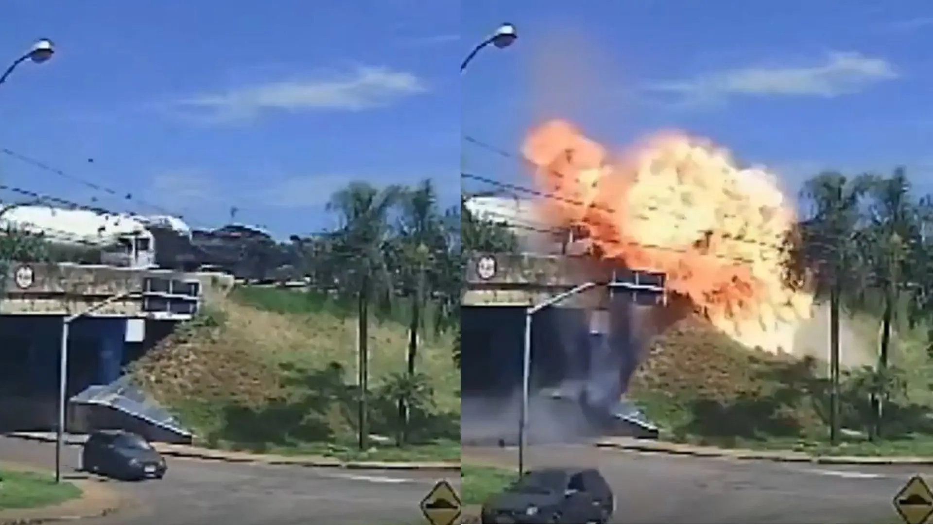 Câmera de segurança registraram o momento da explosão de um caminhão-tanque na PR-092, após colisão com outro veículo de carga, nessa quarta-feira (12). pic.twitter.com/HkfpUFGrtm