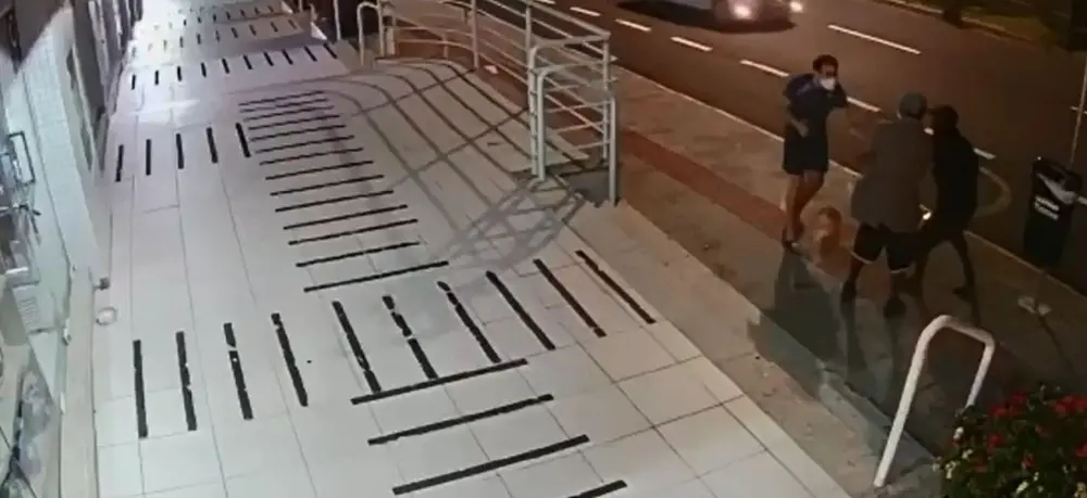 Imagens de uma câmera de monitoramento apontada para a rua mostram o momento em que os dois homens abordam o contador André Souza e puxam o animal de estimação, Maru, pela coleira. Por fim, o tutor aparece acenando e caminhando em direção aos suspeitos.
