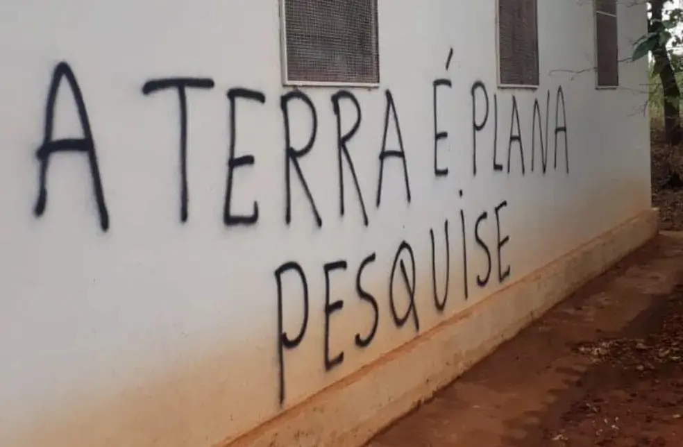 De acordo com o g1, nas paredes internas da capela, que pertence ao território da Paróquia São Benedito, o criminoso deixou pichações alegando que "a terra é plana" — teoria da conspiração desmentida por especialistas.