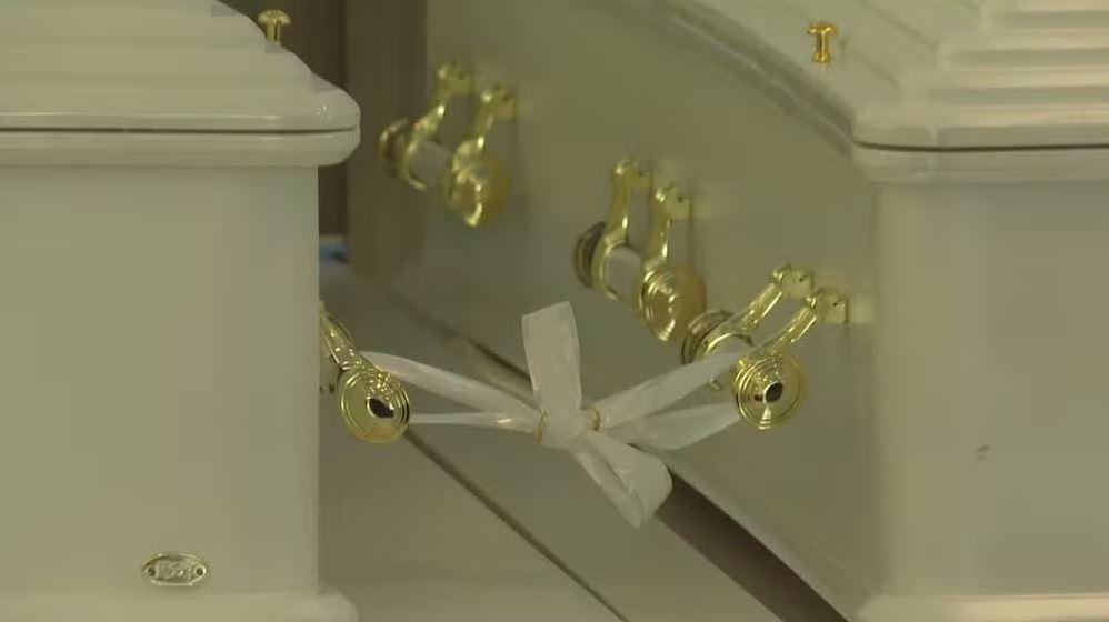 Uma fita branca com alianças foi utilizada para unir dois caixões de casal vítima da queda do avião ATR-72 da Voepass, em acidente ocorrido em Vinhedo (SP) na última sexta-feira (9). Daniela Schulz Froda e o marido, o policial rodoviário Hiales Carpine Froda, foram velados juntos na segunda-feira (12).