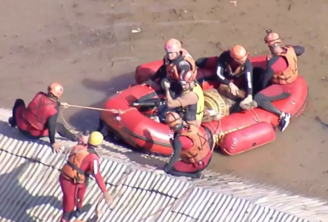 Ao todo, oito pessoas estiveram envolvidas no resgate, que envolveu médicos veterinários do Exército Brasileiro e integrantes do Corpo de Bombeiros. Dois botes foram envolvidos na ação, um deles responsável por puxar a embarcação em que o animal foi alocado.