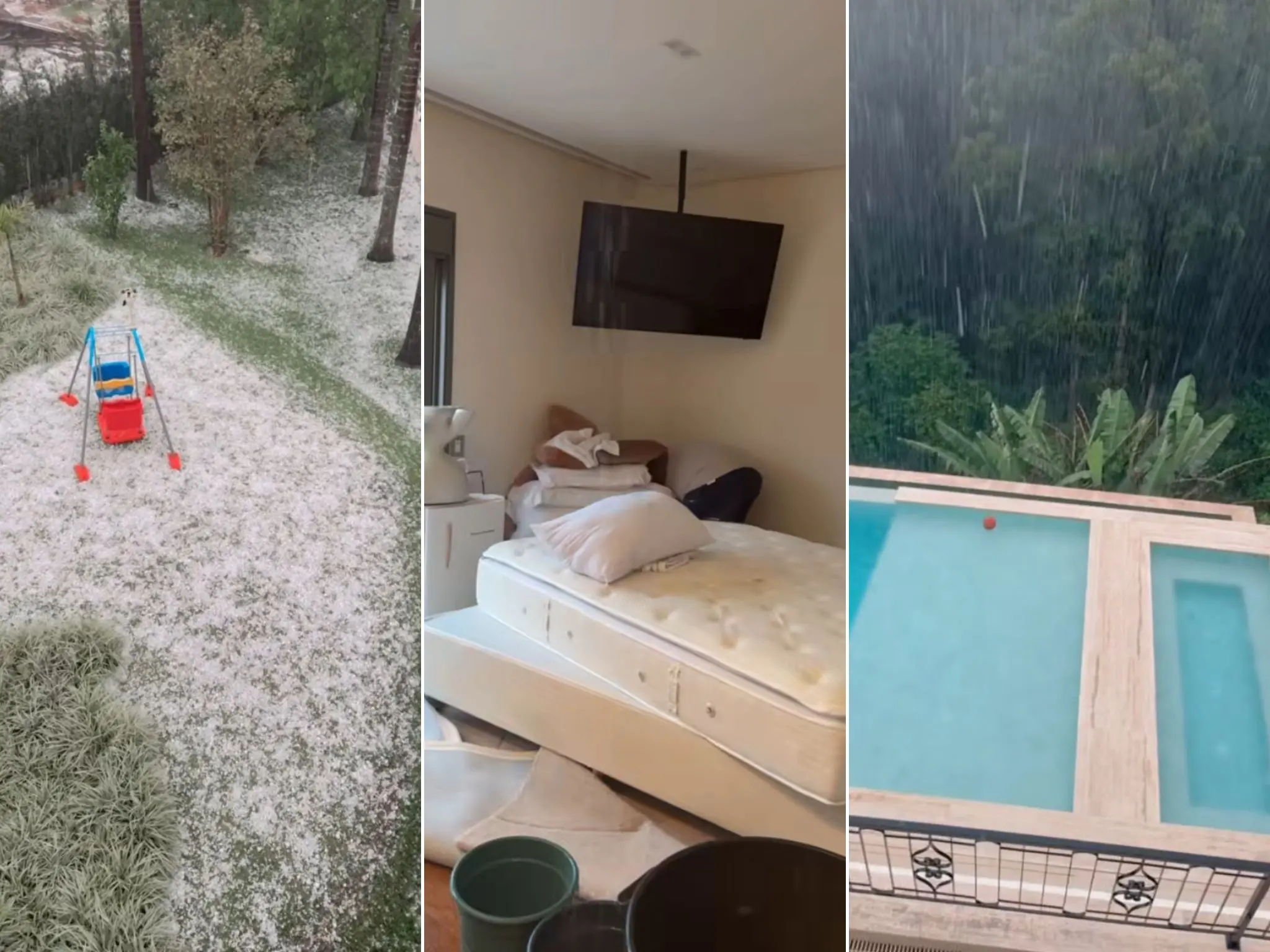As duas compartilharam momentos de tensão nas redes sociais com as infiltrações causadas pelas fortes chuvas, que também chegaram a deteriorar parte dos telhados das casas. Nos vídeos, elas mostraram as pedras de gelo e a água escorrendo por vários cômodos.