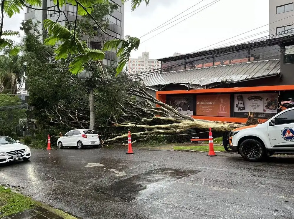 Cidades do Rio Grande do Sul registraram, nesta quinta-feira (24), tempestades causadas após a formação de um ciclone extratropical entre o Uruguai e a Região da Fronteira. Segundo o g1, os primeiros impactos foram registrados na Região Central, com ventos acima de 100 km/h, enquanto Porto Alegre teve registro de chuva com ventos fortes.