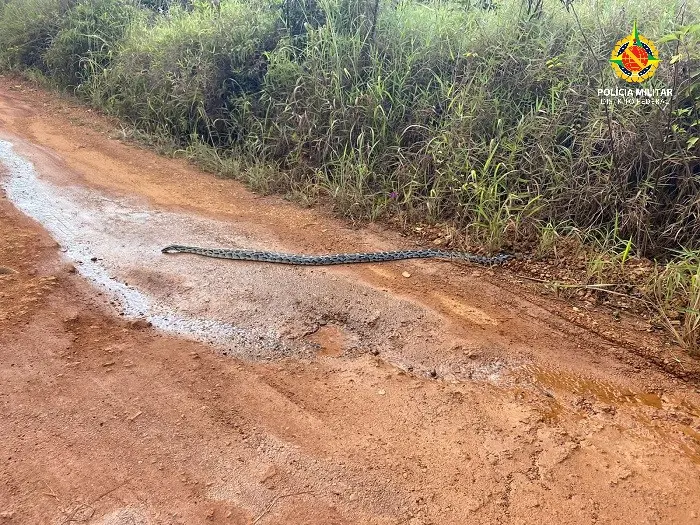 Segundo a PM, o animal, que tem cerca de 2 metros, "está aparentemente saudável e foi encaminhado à sede do Batalhão de Polícia Militar Ambiental".