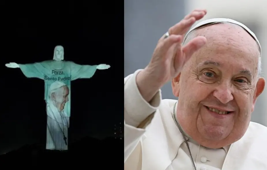 Cristo Redentor projeta imagens do Papa Francisco e mensagens de apoio à saúde do pontífice