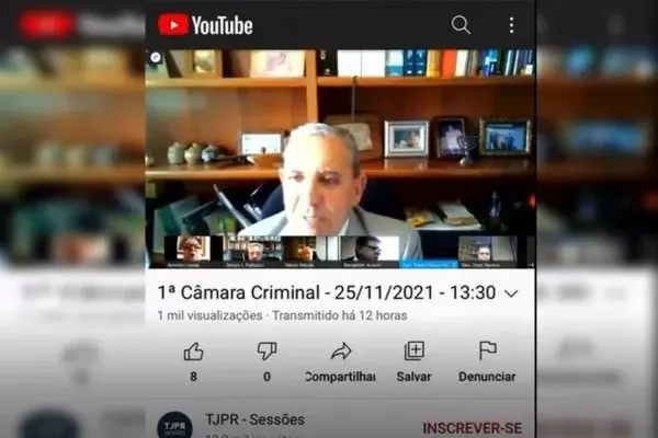 O diálogo pessoal entre os desembargadores foi gravado e transmitido ao vivo pelo canal do TJPR no YouTube. O vídeo em questão, no entanto, não estava mais disponível nesta sexta-feira (26).