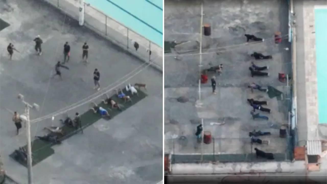 Em uma das imagens capturadas pelos drones, é possível observar que dois instrutores ensinam grupos de 15 e 20 indivíduos, armados com fuzis, práticas semelhantes às aprendidas por forças de segurança.