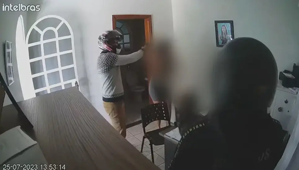 A ocorrência registrada na Polícia Civil detalhou que o pai de 57 anos estava dentro da residência, com a filha de 19 anos, no momento em que a dupla anunciou o assalto. A segunda filha do homem conseguiu se esconder em um armário antes de ser vista e mandou mensagem para parentes e amigos, que chamaram a polícia.