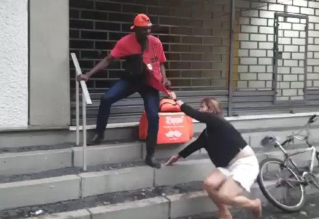 Sandra Mathias foi flagrada agredindo e desferindo golpes semelhantes a chicotadas no entregador no último dia 9 de abril