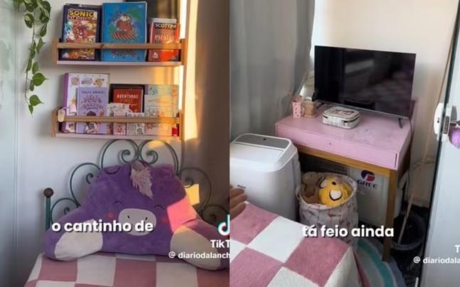 Gabriela Horsch viralizou na última quinta-feira (10) ao compartilhar, no TikTok, que gastou cerca de R$ 10 mil para reformar a varanda e transformá-la num quarto para a filha Ester, enquanto o antigo local onde ela dormia passou a servir de estoque para a loja virtual de lancheiras.