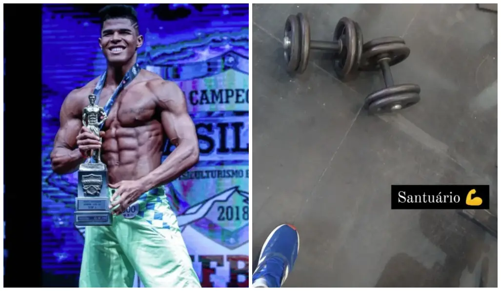 As imagens na academia foram publicadas nas redes sociais por volta das 16h. Eustácio mostrou halteres de musculação com a palavra 'Santuário' e, logo em seguida, uma foto exibindo os músculos. A rotina de treino, inclusive, era bastante intensa, já que ele tinha o título de campeão nacional na categoria Men’s Physique Júnior, em 2018.