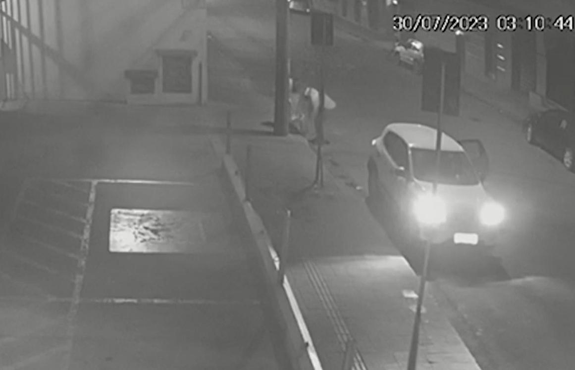 Em imagens de câmeras de segurança, é possível ver o momento em que o suspeito do crime se aproxima da mulher e sai do local com ela nas costas. O homem foi preso em flagrante por estupro de vulnerável, na noite de domingo, no bairro Santo André.