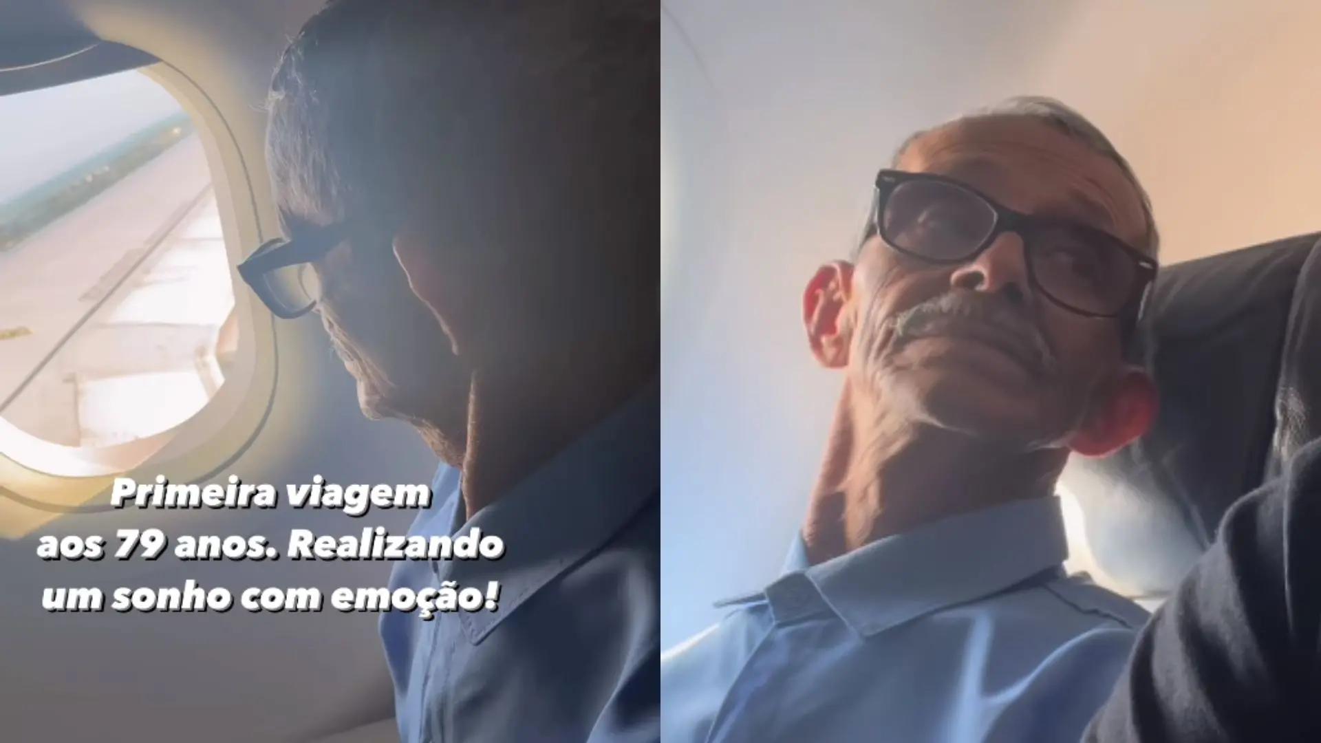 Filho realiza sonho do pai de viajar de avião com quase 80 anos; veja vídeo