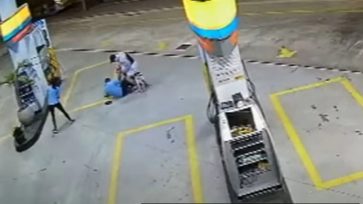 O dono do posto de gasolina informou que dois suspeitos chegaram ao estabelecimento com um galão de gasolina, simularam comprar o produto e anunciaram o assalto em seguida.