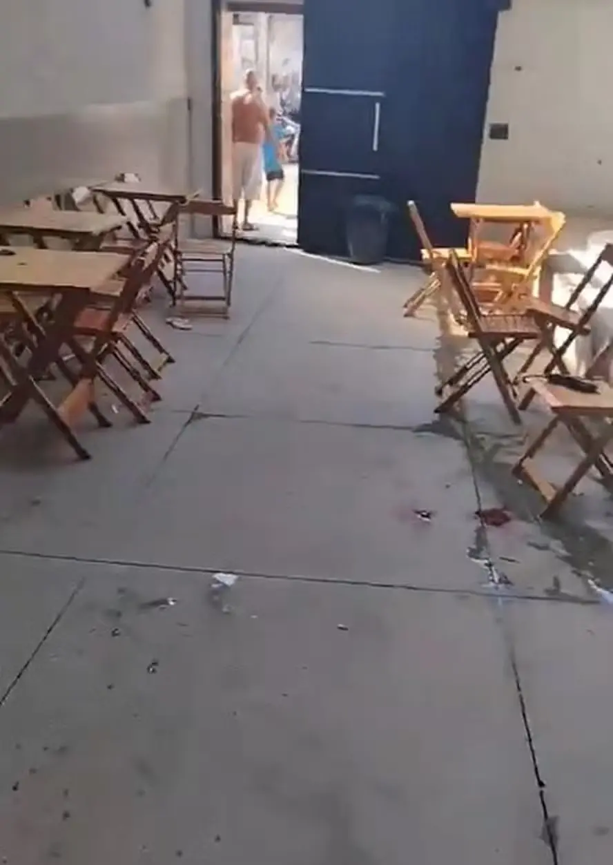 Imagens de câmeras de monitoramento mostram quando os suspeitos chegam de carro ao local com os rostos cobertos por blusas. Com armas empunhadas, eles fazem os disparos e fogem no mesmo veículo. Havia crianças no salão, mas nenhuma foi atingida.