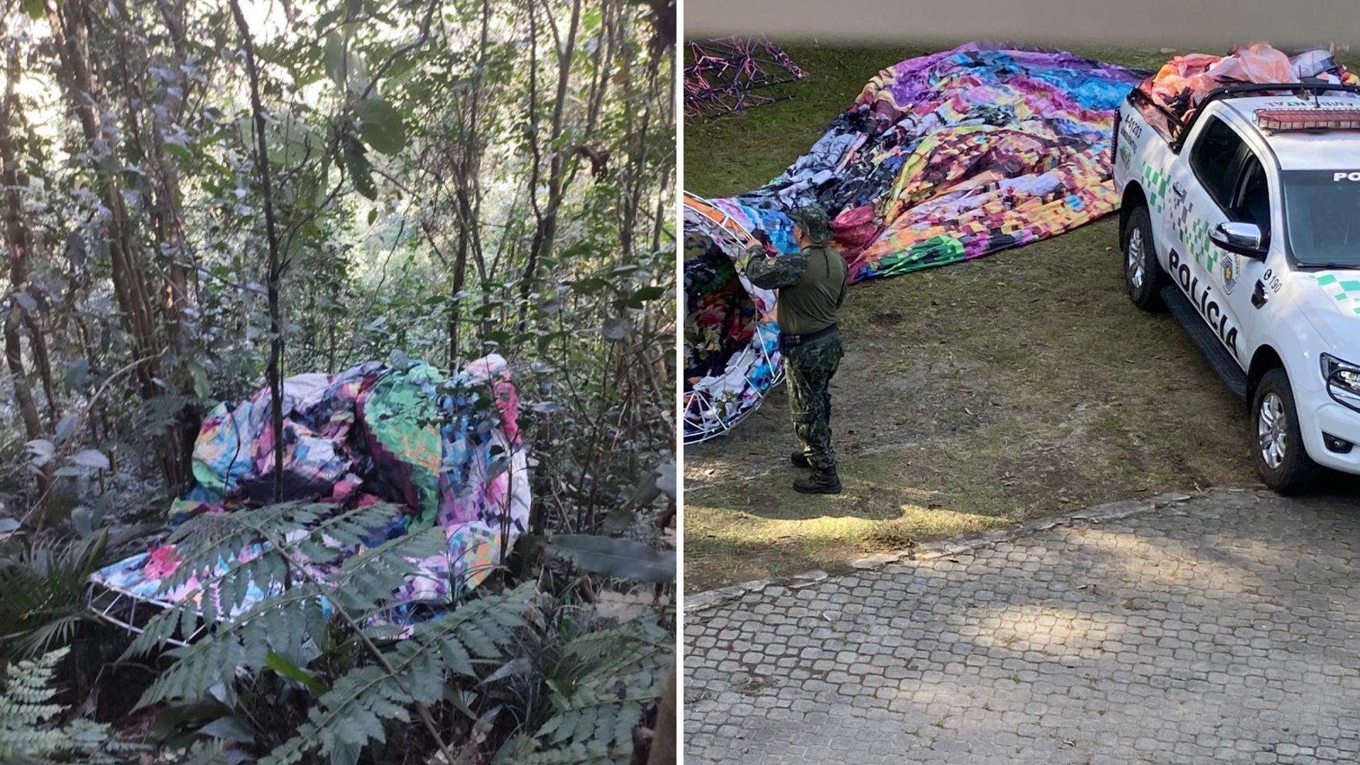 Balão caiu em Santo André, no ABC Paulista. Quatro suspeitos foram encontrados com partes do artefato e autuados por crime ambiental