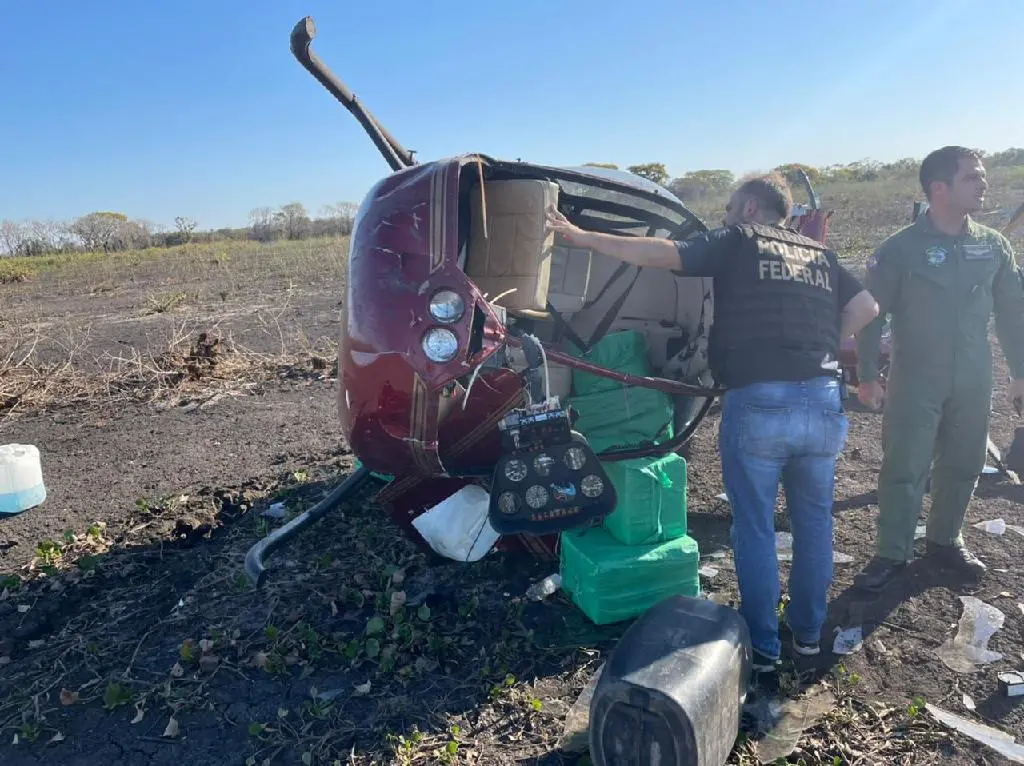 Helicóptero com quase 300 kg de cocaína cai em fazenda no Pantanal de Mato Grosso