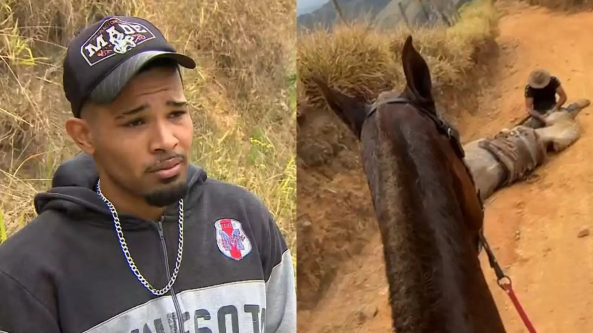 O cavalo foi mutilado após participar de uma cavalgada de aproximadamente 14 km em terreno de muitas subidas. Exausto, o animal parou, deitou no chão e não conseguiu mais prosseguir.