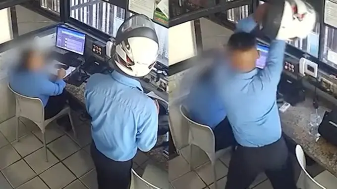 Contrariado, o agressor — que ainda não teve o nome divulgado — pega o capacete e começa a desferir vários golpes contra a cabeça da mulher, que tenta se proteger com as mãos. Apesar da violência, ela não sofreu ferimentos graves aparentes.