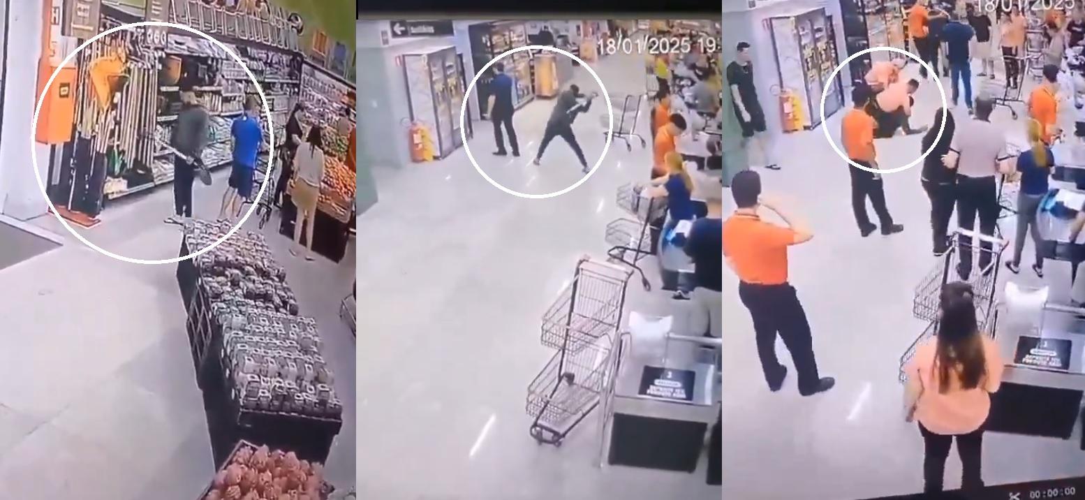 Homem é detido após golpear gerente de supermercado com pá, em MT; veja vídeo