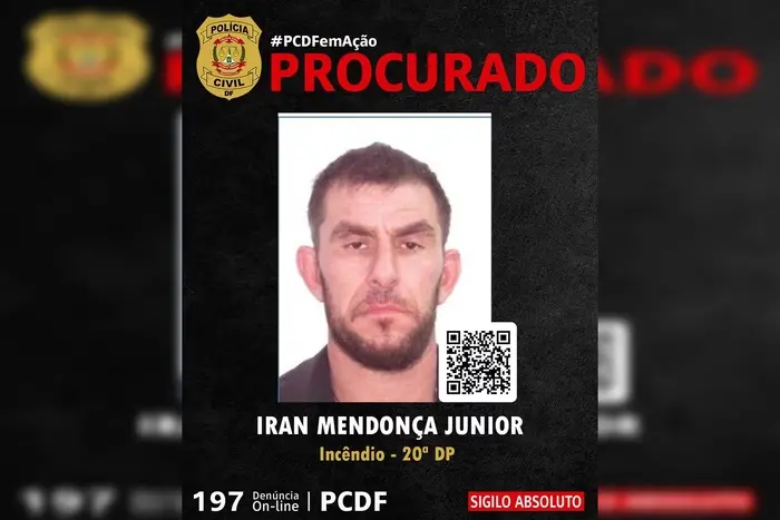A Polícia Civil do Distrito Federal (PCDF) procura o homem que tentou atear fogo contra uma casa quatro vezes. O suspeito, identificado como Iran Mendonça Júnior, tem, segundo a polícia, um conflito com o morador da residência, motivado por uma ação trabalhista movida contra a mãe dele.