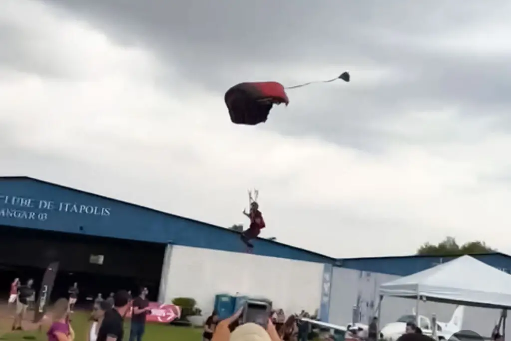 Imagens fortes compartilhadas nas redes sociais mostram o momento exato do acidente. Em alta velocidade, o paraquedista aterriza no espaço reservado ao público do evento, realizado no Aeroclube da Cidade.
