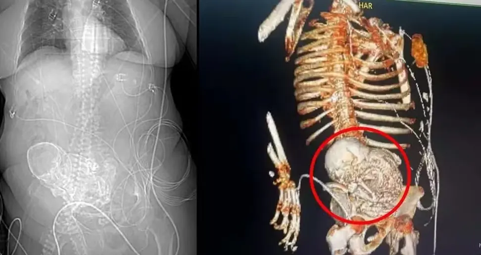 A mulher deu entrada no Hospital Regional de Ponta Porã, no Mato Grosso do Sul, no dia 14, com uma infecção grave e fortes dores abdominais. Depois da realização de uma tomografia 3D, a equipe médica identificou um feto calcificado na região do abdômen da idosa.
