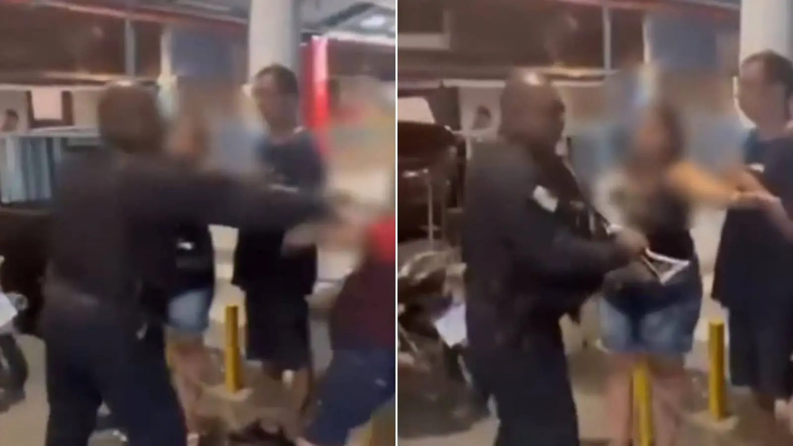 Testemunhas registraram o momento. Nas imagens, é possível observar quando a mulher, identificada como Gláucia da Silva, se aproxima de um casal que parece conversar com o oficial. Em seguida, ele desfere o golpe contra a vítima, que cai no chão com o impacto.