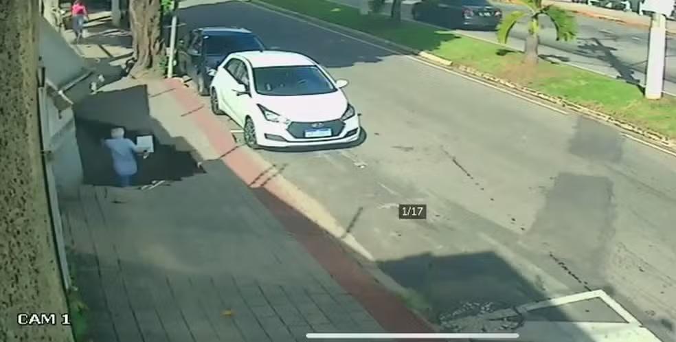 Em imagens de câmera de segurança, foi possível ver Eurípedes caminhando pela calçada, com uma sacola na mão. Ao ficar na frente de um terreno com placas de proibido estacionar, a calçada cede e parte do muro cai em cima dele. O piso pareceu "oco".