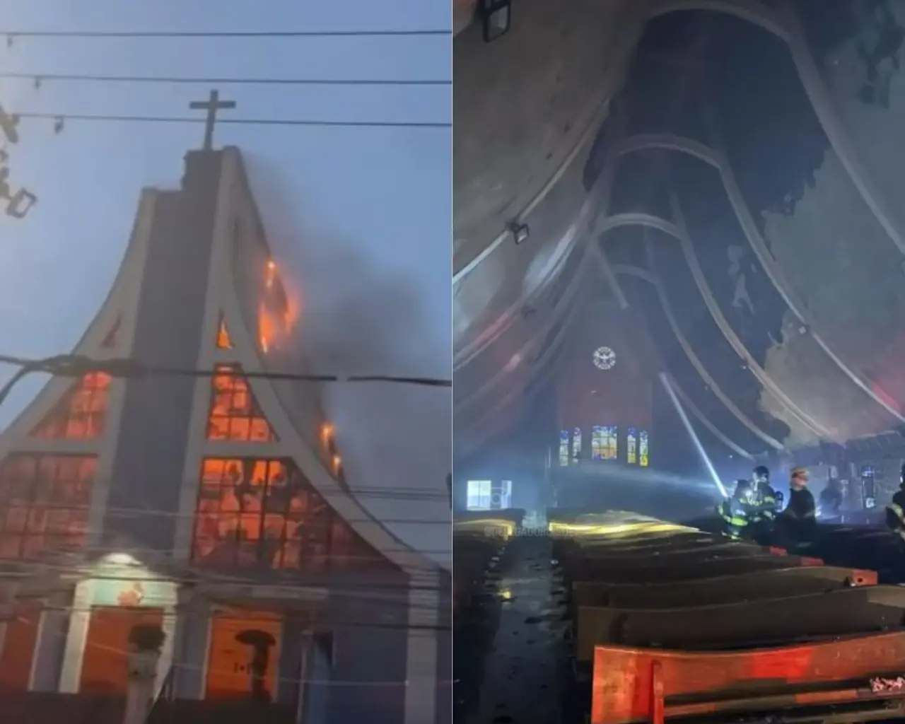 Não houve vítimas. As chamas atingiram apenas o teto da igreja, fazendo com que o local não ficasse totalmente comprometido. As imagens são assustadoras.