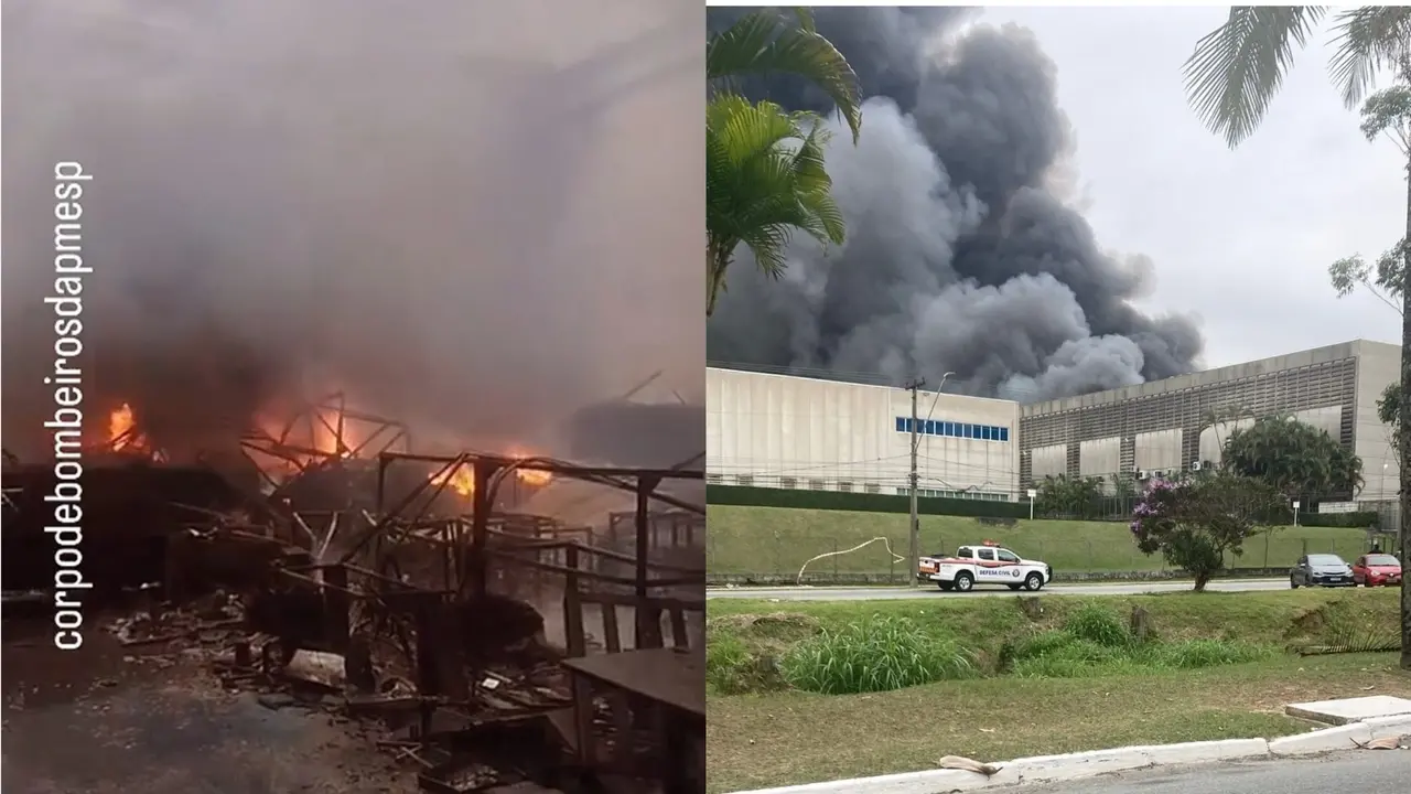 Incêndio de grandes proporções atinge cinco galpões comerciais na Grande São Paulo