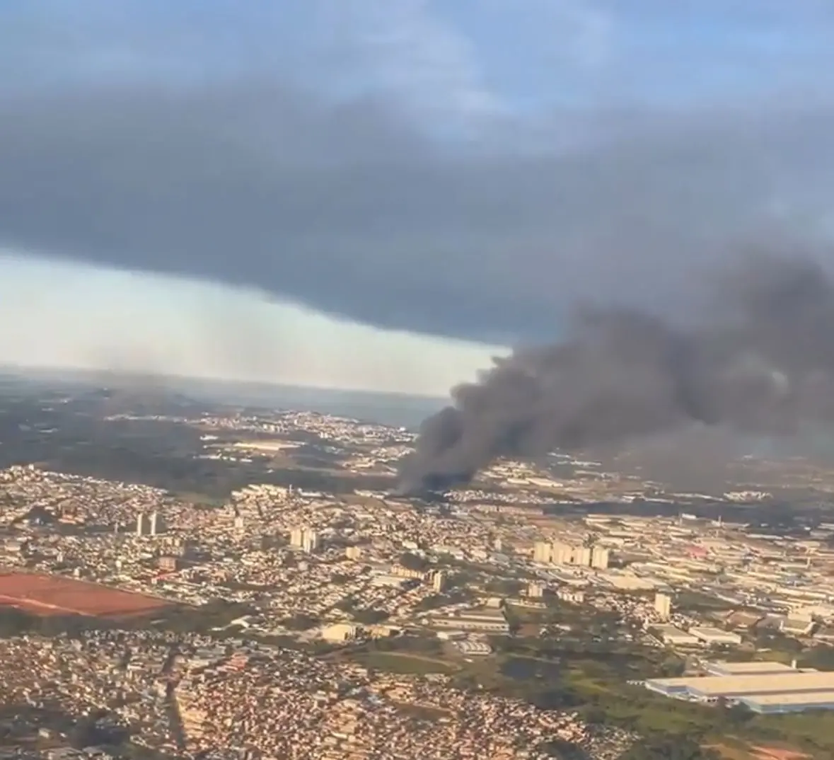 Incêndio de grandes proporções atinge indústria química em Guarulhos, SP