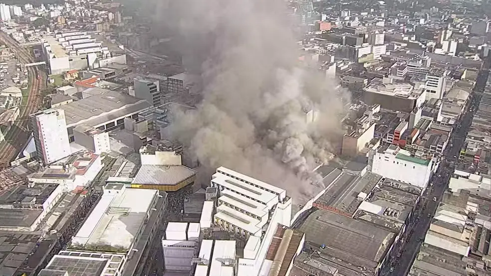 Incêndio de grandes proporções atinge shopping no bairro do Brás, em São Paulo