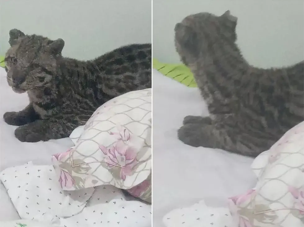 Jaguatirica é encontrada em cama de criança após janela ficar aberta em casa no MS