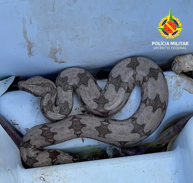 Com ajuda de outras pessoas, o homem colocou a cobra dentro de uma lixeira vazia e acionou os policiais.