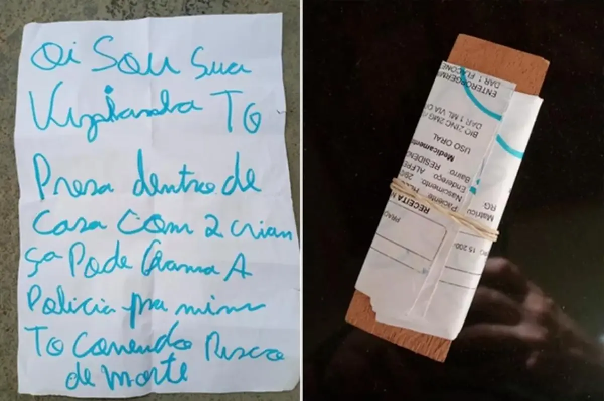 "Oi, sou sua vizinha. Tô presa dentro de casa com duas crianças. Pode chamar a polícia para mim? Tô correndo risco de morte", escreveu a vítima no bilhete.