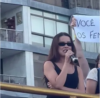 Com a voz embargada pela emoção, a cantora explicou que sua presença era motivada por uma perda pessoal brutal. "Eu tô aqui hoje pela minha amiga Clarissa (Costa Gomes) que foi assassinada com 36 facadas," revelou a artista à multidão.