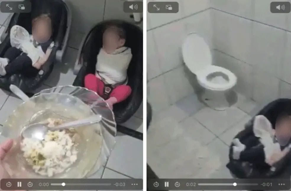 As imagens mostram elas sentadas em cadeirinhas de bebês, no chão de um banheiro. Segundo o G1, os vídeos foram gravadas na Escola de Educação Infantil Colmeia Mágica, no bairro Vila Formosa.