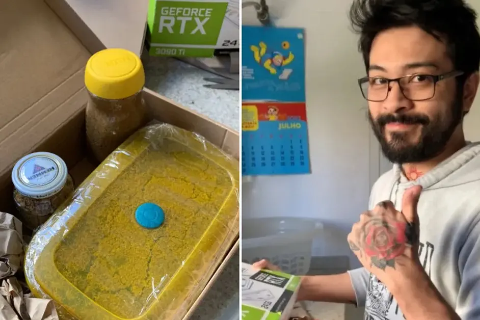 O pedido foi feito em julho do ano passado. No entanto, após reportar o caso para a Amazon, recebeu o produto certo em 19 dias. No TikTok, Maurício Takeda mostrou o momento em que abriu a caixa e encontrou os potes de areia.