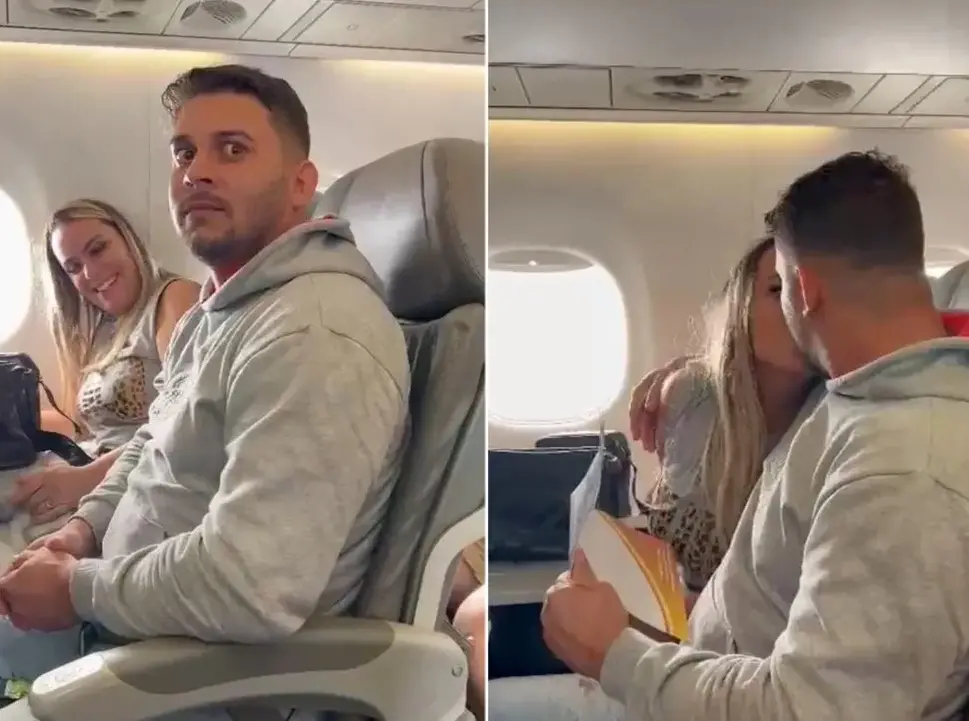 Marido descobre gravidez de gêmeos em anúncio de piloto durante voo de férias; veja vídeo