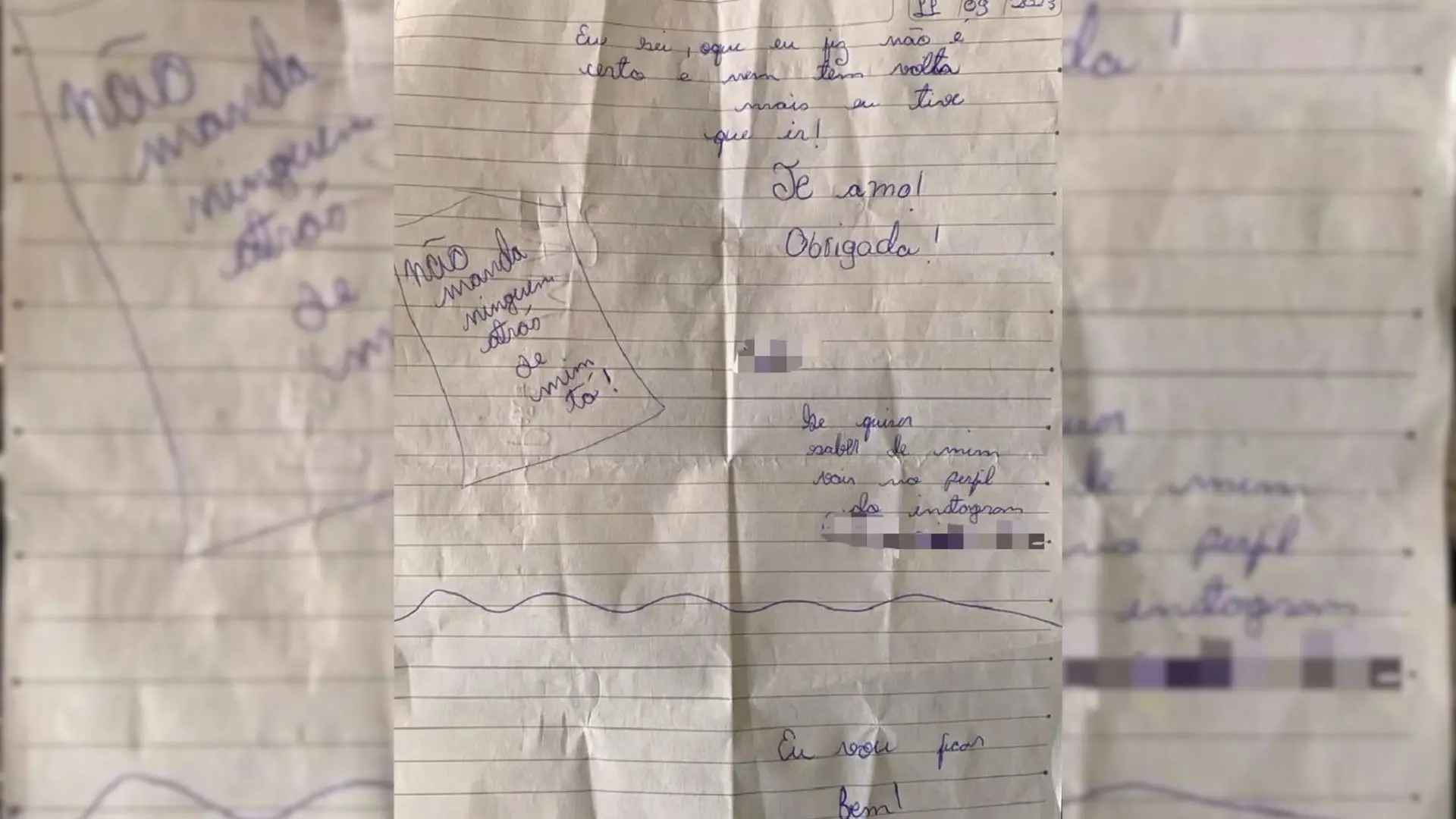 No bilhete, a menina escreveu: "Eu sei que o que eu fiz não é certo e nem tem volta, mas eu tive que ir. Te amo. Obrigada".